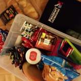 The first thing I always pack is my snack bin. Whether the trip is 3 hours or 12 hours, a snack bin that is readily available is a must have. My bin contains things such as bagels, chips, granola bars/snack bars, peanut butter or Nutella, fruit that doesn’t bruise easily such as apples, a small cutting board, knife, and small plastic plates. And don’t forget the kitchen towel! The snack bin is always easily accessible so that my daughter can reach it while we are driving. And it is small enough that, when we stop at a rest area, it can be brought over to a picnic bench for a longer, more relaxing stop.